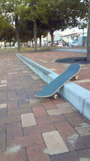 スミスグラインド・・・かなり頑張ったけど、ノーズのウィールがどうしても縁石に擦れてグラインドできない