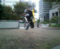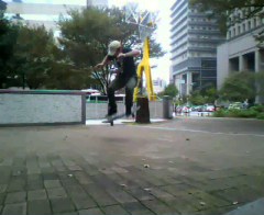 と思って着地した瞬間、ウィールバイトで思いっきり吹っ飛ばされた